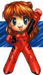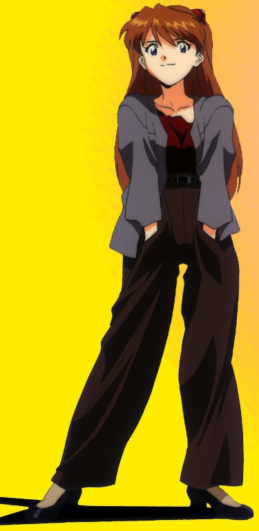Sohryu As Langley (14) Second Children La segona persona capaç de pilotar un EVA trobada per l'Institut Marduk va ser aquesta noia germano-japonesa pilot del EVA-02, plena de vitalitat i amb un ego impressionant. Nascuda a Alemania i criada als Estats Units, Asuka és tres quarts japonesa i un quart alemana. Pareix l'única que disfruta pilotant el seu Evangelion. Encara que al principi els nois la molesten i enfaden, més tard inclòs arriba a tenir un petit romanç amb Shinji. Causa sensació a l'escola, i la diverteix molt martiritzar al pobre i tímid Shinji, que no sap per on agafar-la. Però no és tant segura com aparenta. |