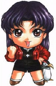 seva, cosa que tamb� far� amb Asuka. La seva casa �s un caos, i a la nevera sols t� cervesa (Yebisu, per supost) i mejar congelat, per� a part de tot aix�, es encantadora... A m�s, t� una mascota molt especial, Pen Pen, ni m�s ni menys que un ping�� d'aigua calenta que va a balnearis. Tindr� la oportunitat de recordar el seu amor de juventut quan Kaji arribi amb Asuka des de Alemania. |